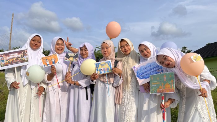 Para peserta tampak antusias mengikuti kegiatan dengan membawa poster-poster bernuansa Ramadhan, spanduk bertema religi, serta mengenakan atribut islami. Suasana pawai berlangsung tertib, penuh semangat, dan mendapat sambutan positif dari masyarakat sekitar yang turut menyaksikan kegiatan tersebut.